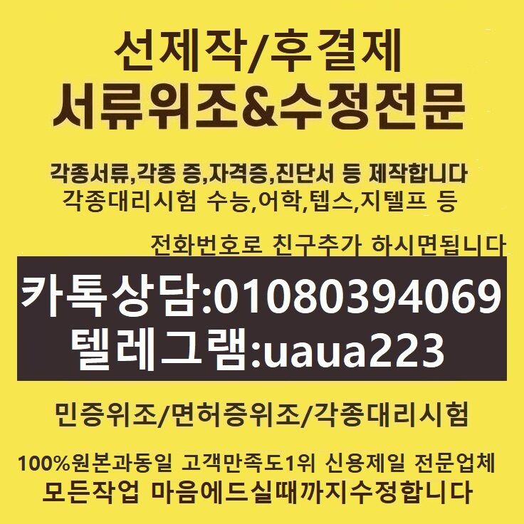 [제작위조]문서위조#미성년자쯩#어학대리시험→톡상담친추+01080394069텔레uaua223민증위조#콘서트티켓위조#전문대학원대리시험#대학교졸업증명서제작#학위증제작#학위증위조#진단서위조